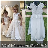 I ordered a dress for my daughter who will be a flower girl in an upcoming wedding. Not only do they falsy advertise the dresses as their own, they refuse to give you a refund when you receive their 99 cent version. The dress I ordered is pictured on the left, what I received is on the right. They want to argue with me about the color I ordered (ivory) versus what I received (white), the measurements are way off, and the dress is not the same at all. They refuse to let me return the dress to get my money back because of their false advertising. PLEASE choose a different place to order special day dresses. You will be disappointed and out your money.
