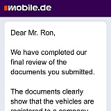 Mobile is protection dealers more then end users. I bought car from https://home.mobile.de/DEINAUTOHAUSREINFELD#ses and i can not put my review because we do all by the phone and not by the email from mobile.de. When i recive car the engine didnt work (mistake engine over heated). I couldnt make few km with car. I pay fair price for the car and know have big problems with extra costs 3000€.