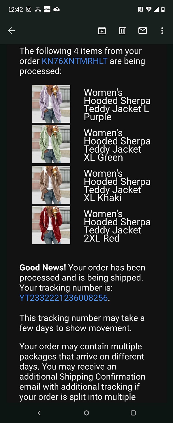 6 emails and no response. The order was for 4 pais of womens silk socks. I don't believe they were same ones I ordered,because they didn't look like the pictures and only 2 were the correct color.