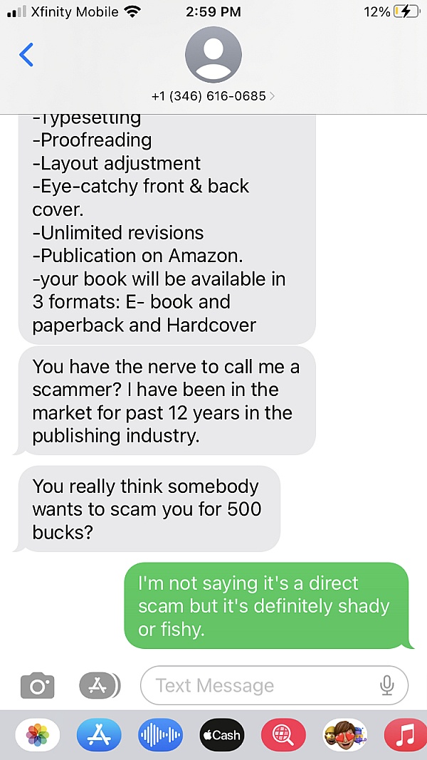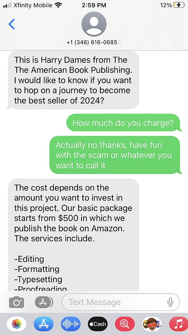 These guys sent me a text out of nowhere saying they could get me published. I first asked how much but after reading a typo in the first text I realized something was up. When I declined and said good luck with the scam, the person got really defensive. They also tried to gaslight me on trustpilot after I left a review. They suggested I send the proof to their email but the address doesn't exist. Well I hope they see the evidence here.